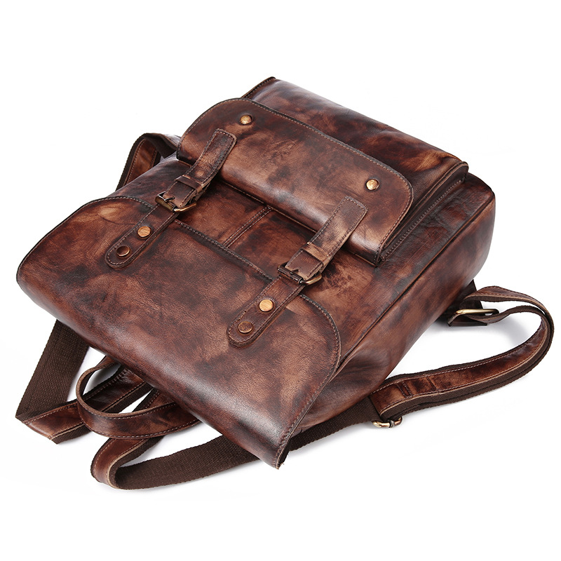 Style | Factory price brand design good quality vintage brown leather backpack bag for school |