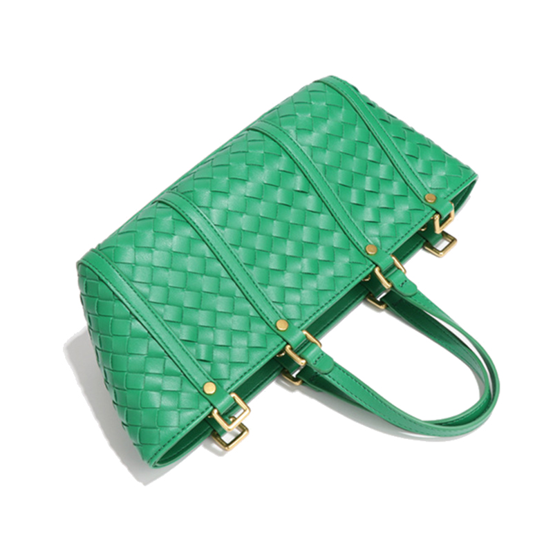 Chic Green Woven PU Leather Handbag for Women |
