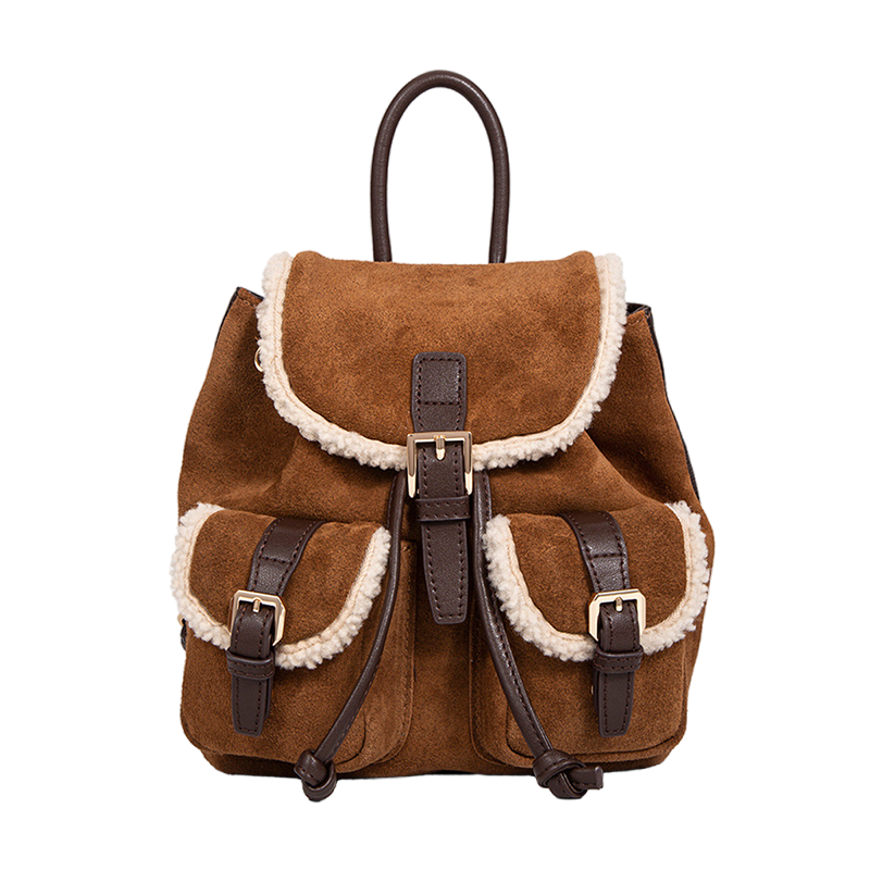 Stylish Winter Vintage Brown Suede Leather Backpack for Women
